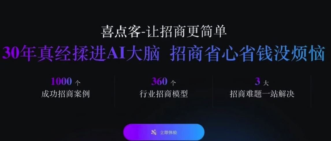 一、核心关系喜点客是武汉渠道风投网络科技有限公司旗下AI招商智能体产品。武汉渠道风投网络科技有限公司(简称“渠道风投”)是中国招商外包行业和中国企业渠道建设风险投资行业新模式的开创者,拥有30年以上招商实战经验、200多人专业招商团队,累计服务企业超过1000家。喜点客是在渠道风投创始人陈飞先生30年招商实战中总结出来的“四轮驱动”招商方法论基础上,将1000个成功招商案例揉进AI大脑,通过调用各类大模型、大数据...