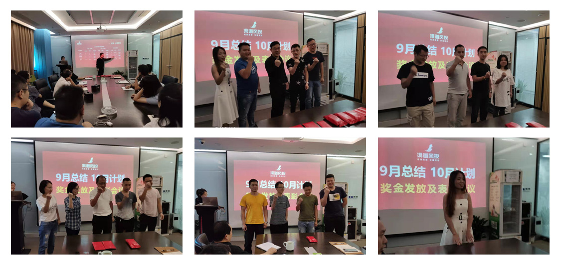 2019年9月29日,武汉渠道风投网络科技有限公司九月份月度总结大会在大会议室如期召开。主持人对此次会议的参会人员宣布“奋战100天,多赚钱,好过年”为主题的激励政策。室外艳阳高照,室内一群渠道风投人挥洒激情。